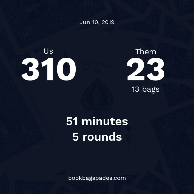 Fast forward to October 2018 and I was in Miami for my birthday along with a few friends. On the rooftop of the Marriot, a Spades game broke out. Having played Spades at family functions growing up in Kentucky, moving to Philly and playing with people from there, DC and New York, I noticed that you always have to start by talking about what rules you play with. Everyone plays with different rules. I played a lot of Yahoo! Spades back in the day (RIP) but it seems those Ace high rules never fly when you play with people in person. The only thing all of these groups had in common besides the trash talk was the scoring with pencil and paper. Enter, Bookbag.
